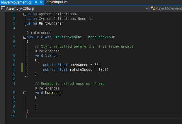 public string rotateAxisName = "Horizontal"; //좌우 회전을 위한 입력축 이름