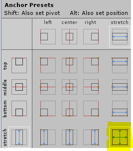 5.Slider의 자식 오브젝트를 모두 선택하고(Background, fill area, fill오브젝트) 앵커 프리셋+Alt를 눌러서 모든 방향 Stretch를 선택한다.