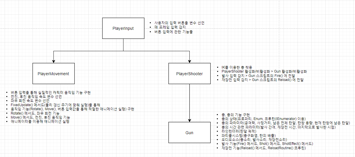 PlayerShooter의 기능이 총을 이용하기 위한 입력값 감지, 값을 Gun 스크립트에 전달하는 역할이라서