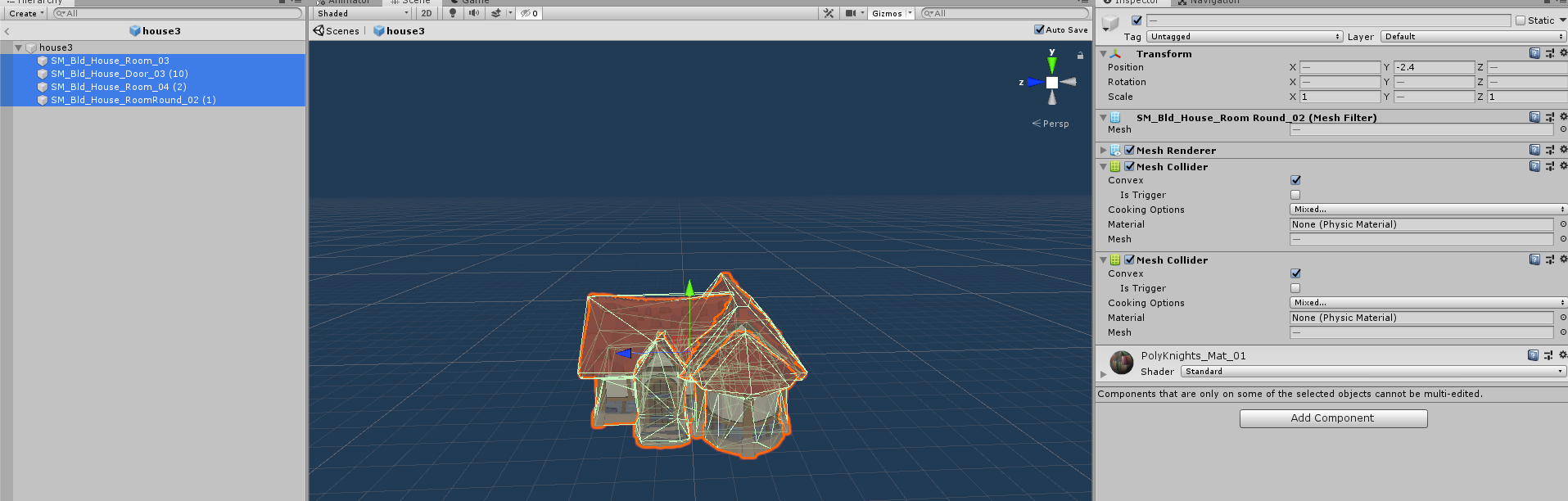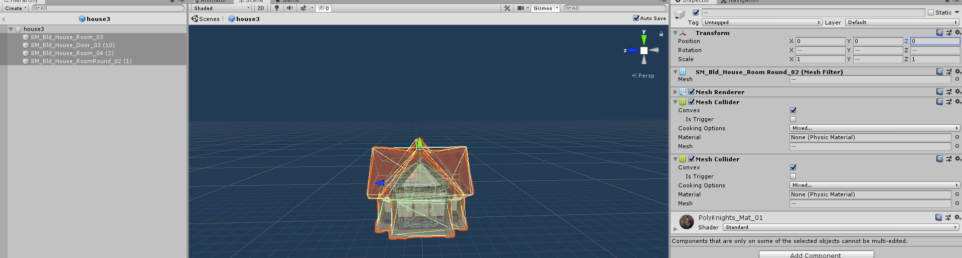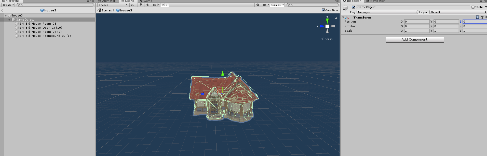이때 정렬 팁은 자식오브젝트 하나를 선택해서 빈 게임 오브젝트를 생성하고 이 빈 게임 오브젝트를 빼내서 자식오브젝트들을 이곳에 담는다. 그리고 이 게임 오브젝트의 위치를 0, 0, 0으로 초기화하면 자식 오브젝트들의 형태를 유지한채로 부모 오브젝트와 자식오브젝트의 위치를 정렬할 수 있다.