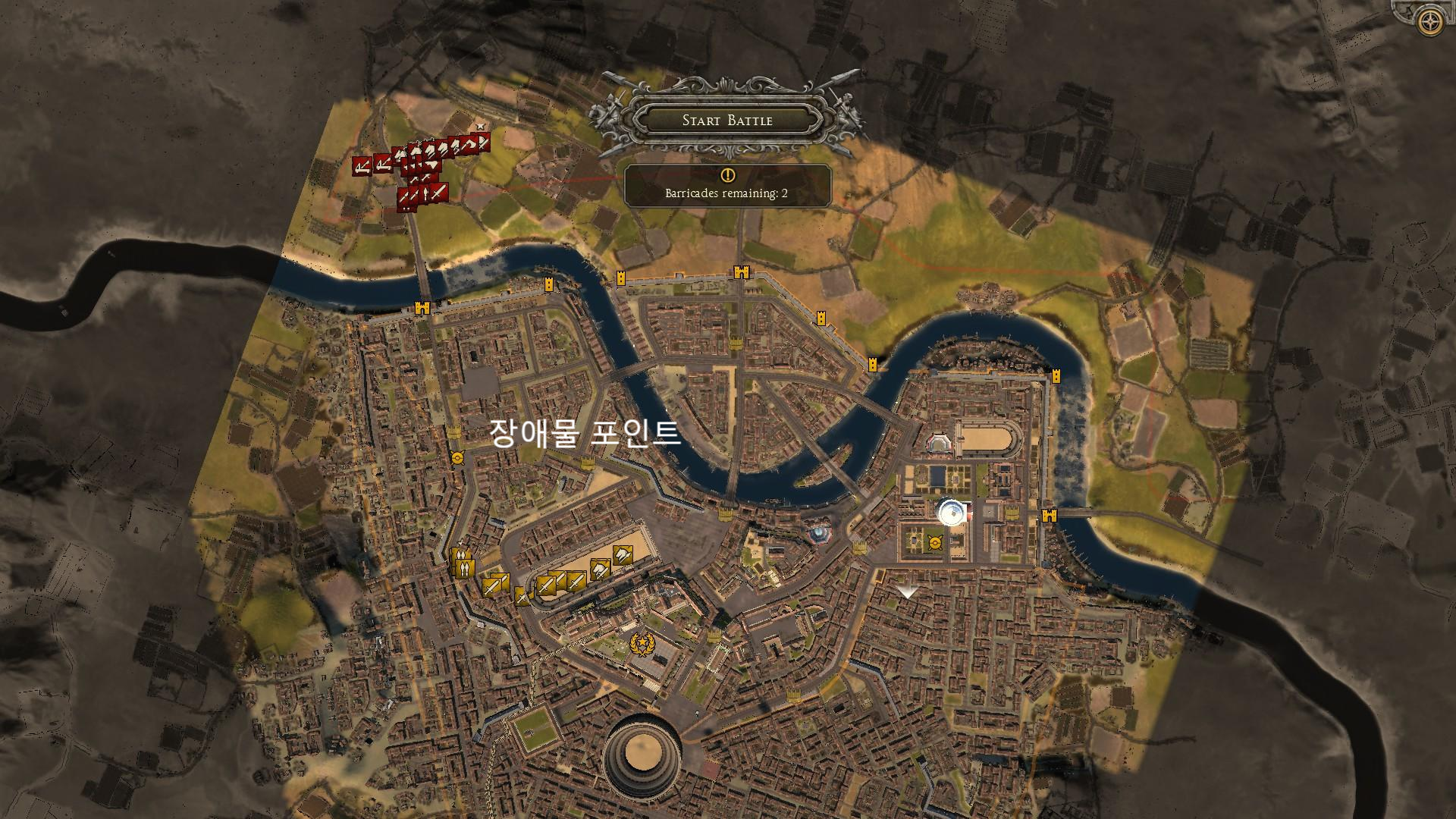 아틸라 토탈워에서는 장애물 배치 포인트가 여러 군데 있지만 최소 한 개씩 장애물을 배치하여 적의 이동경로를 막고 전략적으로 방어할 수 있다. 이 기능을 활용하여 이 게임에서는 게임을 시작할 때마다 특정 위치에 랜덤하게 몇 개의 장애물을 배치하여 적들의 이동경로가 바뀐다면? 이렇게 되면 익숙한 맵이지만 배치된 장애물들의 개수에 따라 전투에 유리한 지역, 불리한 지역이 발생하고 이를 플레이어가 판단하고 장소를 선택하는 재미가 있지 않을까?