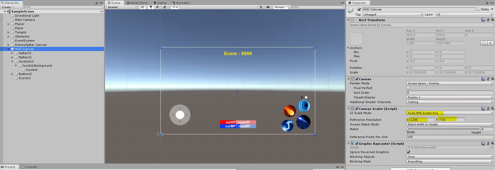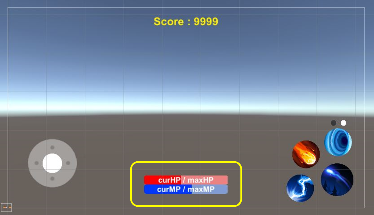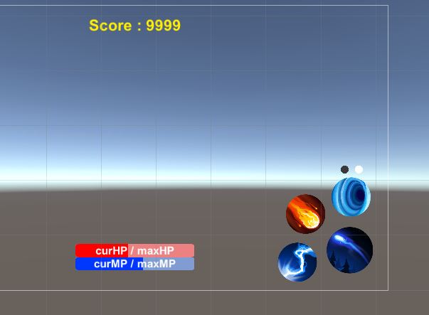 - HUD: 게임 플레이에 필요한 기본UI 구현하기(캐릭터 HP/MPbar, 공격과 스킬버튼, 스코어)