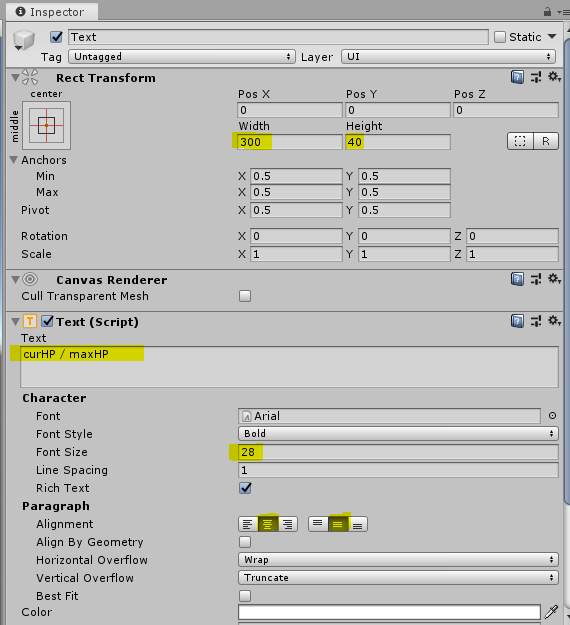 2.Text (CurHP, MaxHp)추가하기