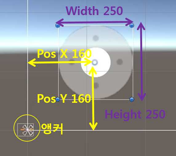 Pos X 160, Pos Y 160, Width 250, Height는 250으로 변경했다.