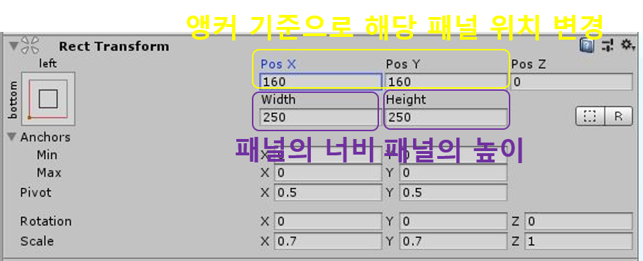 Width는 패널의 너비(폭), Height는 패널의 높이를 변경할 수 있다.