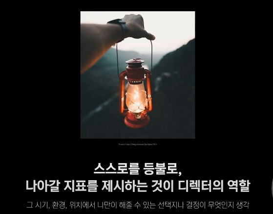 -이러한 생각을 바탕으로 했을 때 프로젝트를 함께 이끌어 나가는 디렉터의 역할이란 무엇인가 고민한다면 그 긴 터널을 스스로를 등불로 나아갈 지표를 제시하는 것이 디렉터의 역할