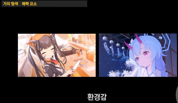 -따라서 컨셉과 프로덕트가 포장재의 역할일 뿐 실제로 고객이 구매하는 것이 일상에서 얻는 캐릭터의 애정과 호감이라면 스트레스 받지 않는 캐주얼한 세계관, 캐릭터와의 애정관계를 중요시 하는 유저층이 있을 거라고 판단