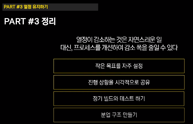 -열정 감소를 늦추려면 개발과정에서 성취감을 얻는 게 중요함