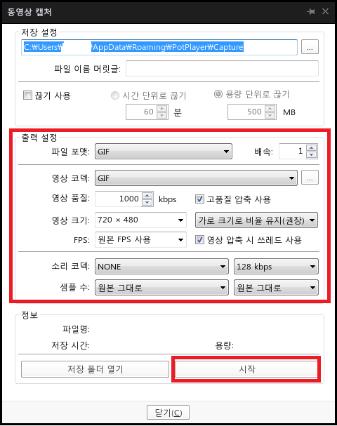 팟플레이어로 동영상 gif 생성하기