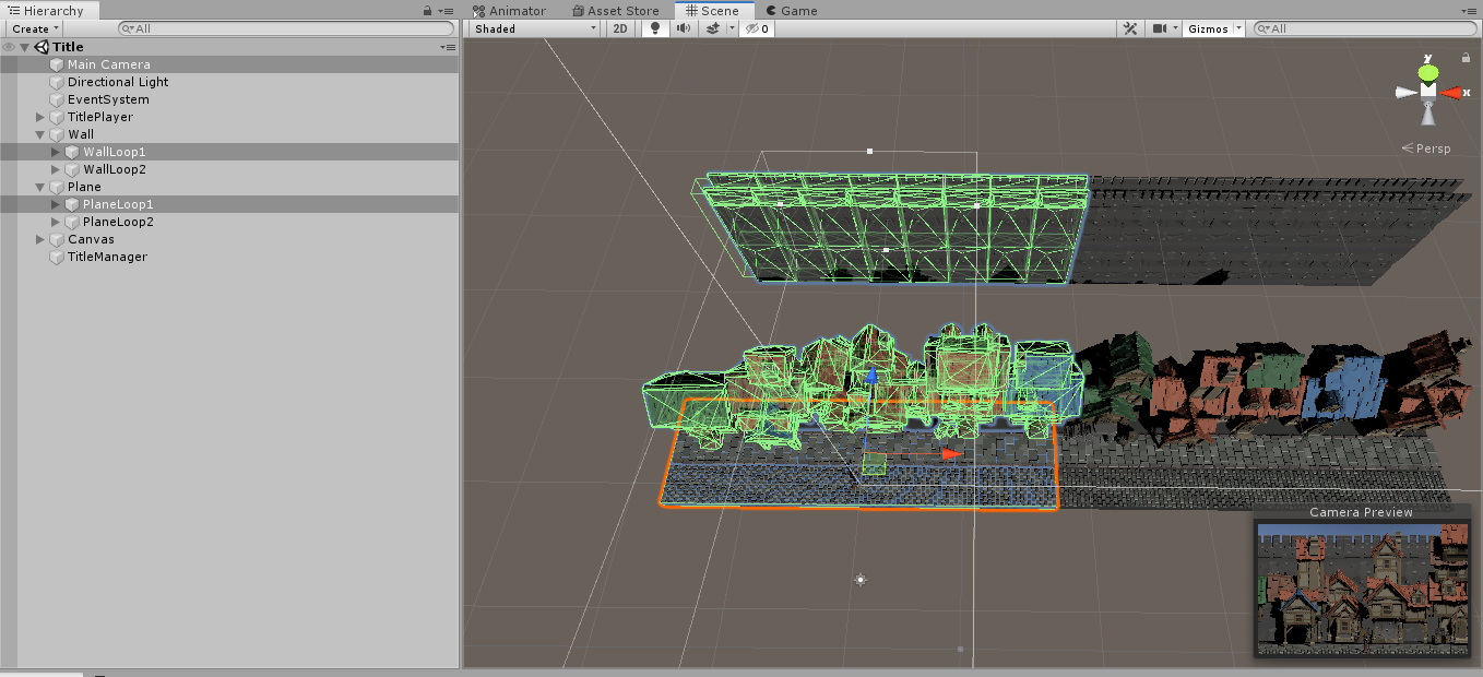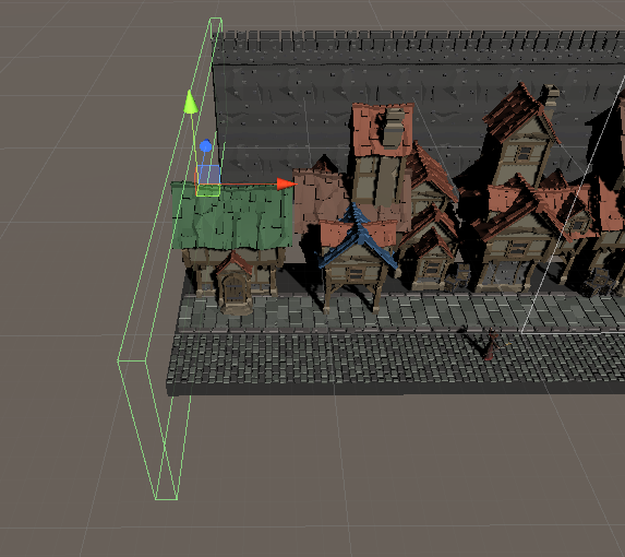 제자리를 달리는 플레이어와 바닥+건물, 성벽들을 일정 거리마다 배치하고(2d에서 레이어 별로 배치하듯이) 이동 속도를 다르게 하여 러닝 게임에서의 배경 스크롤링처럼 구현하기로 결정했다. 유니티 책에서는 배경화면 넓이를 기준으로 이동된 오브젝트 위치를 재배치하는데 나는 3D 오브젝트이기 때문에 그럴 수가 없었다. 따라서 박스콜라이더와 OnTriggerExit()를 이용하여 화면 왼쪽 외곽으로 이동한 오브젝트를 검출하고 위치를 재배치하는 형태로 구현했다.