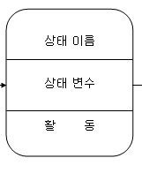 - 라운드 사각형의 위 쪽에는 상태의 이름, 아래 쪽에는 그 상태에 들어가거나 나갈 때 특별히 무엇을 해야할지를 기술한다.